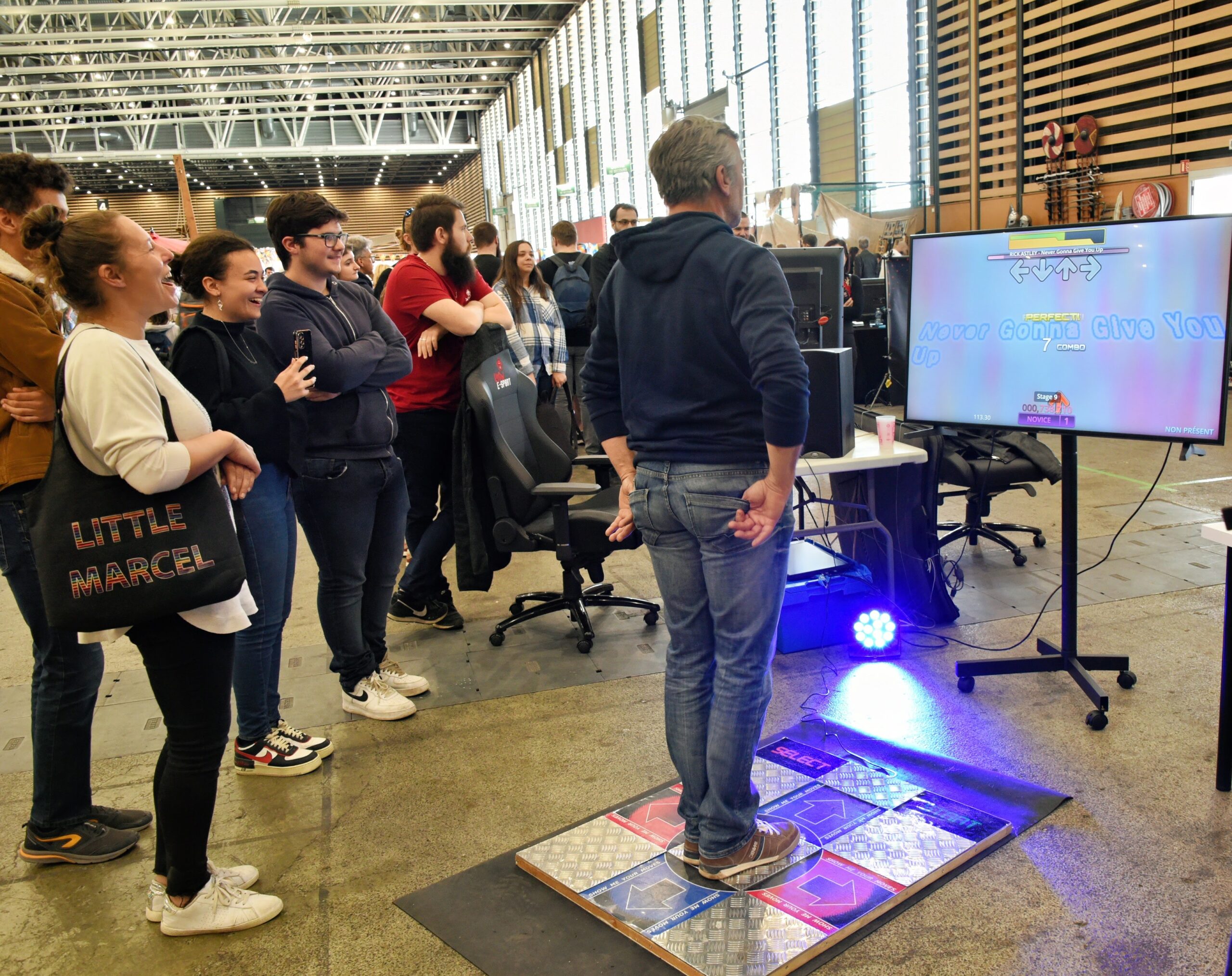 Avec 10 ordinateurs qui accueillent durant les deux jours de l’événement une successions de tournois et sessions de jeu libre sur Trackmania et Counter Strike 2; une grande Zone Réalité Virtuelle permettant aux visiteurs de tout ages de tester une sélection de jeux et d’expériences avec casque et retours haptiques; un lot de consoles Nintendo Switch pour du tounroi Smash Bros et Mariokart; et notre incontournable Stepmania qui verra défiler des danseurs sans discontinuer!